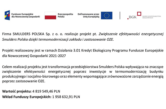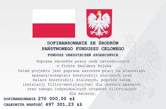 W Smulders Polska dbamy zarówno o warunki pracy, jak i wdrożenie ekologicznych rozwiązań. W tym celu uzyskujemy dofinansowania.