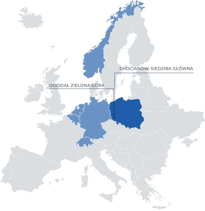 Nasz zespół produkcyjny, pracujący w dwóch oddziałach, Chocianowie i Zielonej Górze, łączy fachową wiedzę z bogatym doświadczeniem.